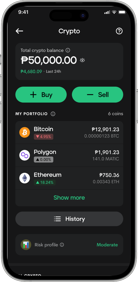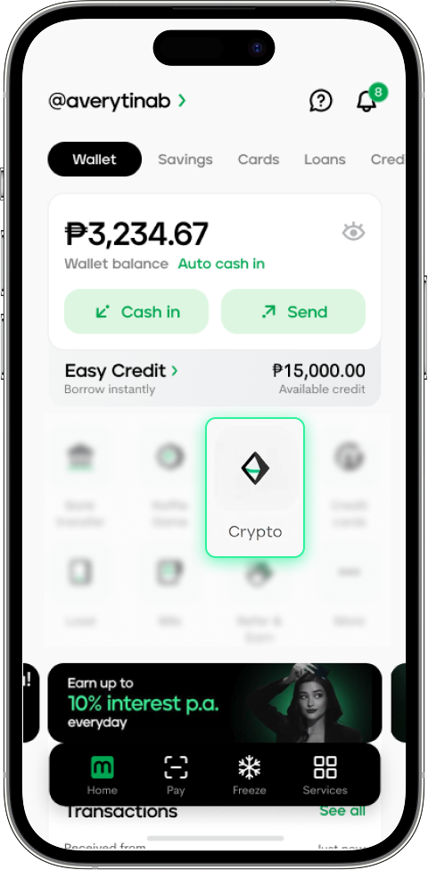 Log in to Maya and tap Crypto