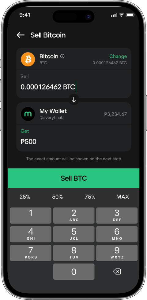 Enter the amount, tap Sell, and confirm your sell order